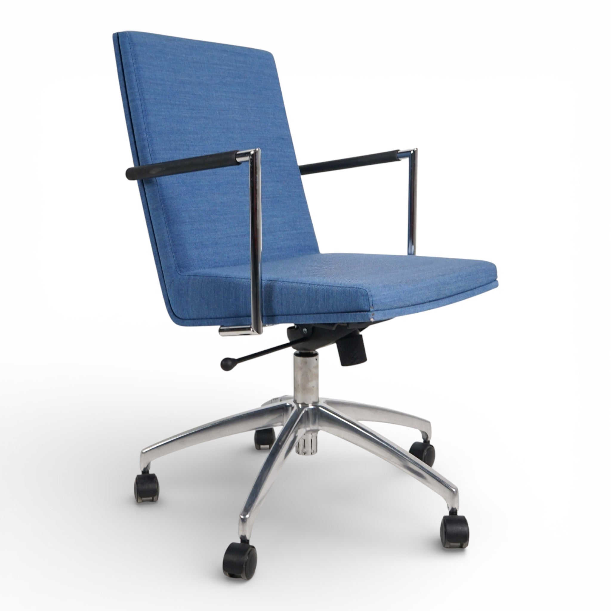 Myke konferansestoler fra EFG i modellen Woods, med godt polstret sete og rygg. Slanke armlener som gir god støtte uten å ta for mye plass. Stolene er relativt smale og kan også benyttes i rom med mindre plass. De har justerbar sittehøyde.