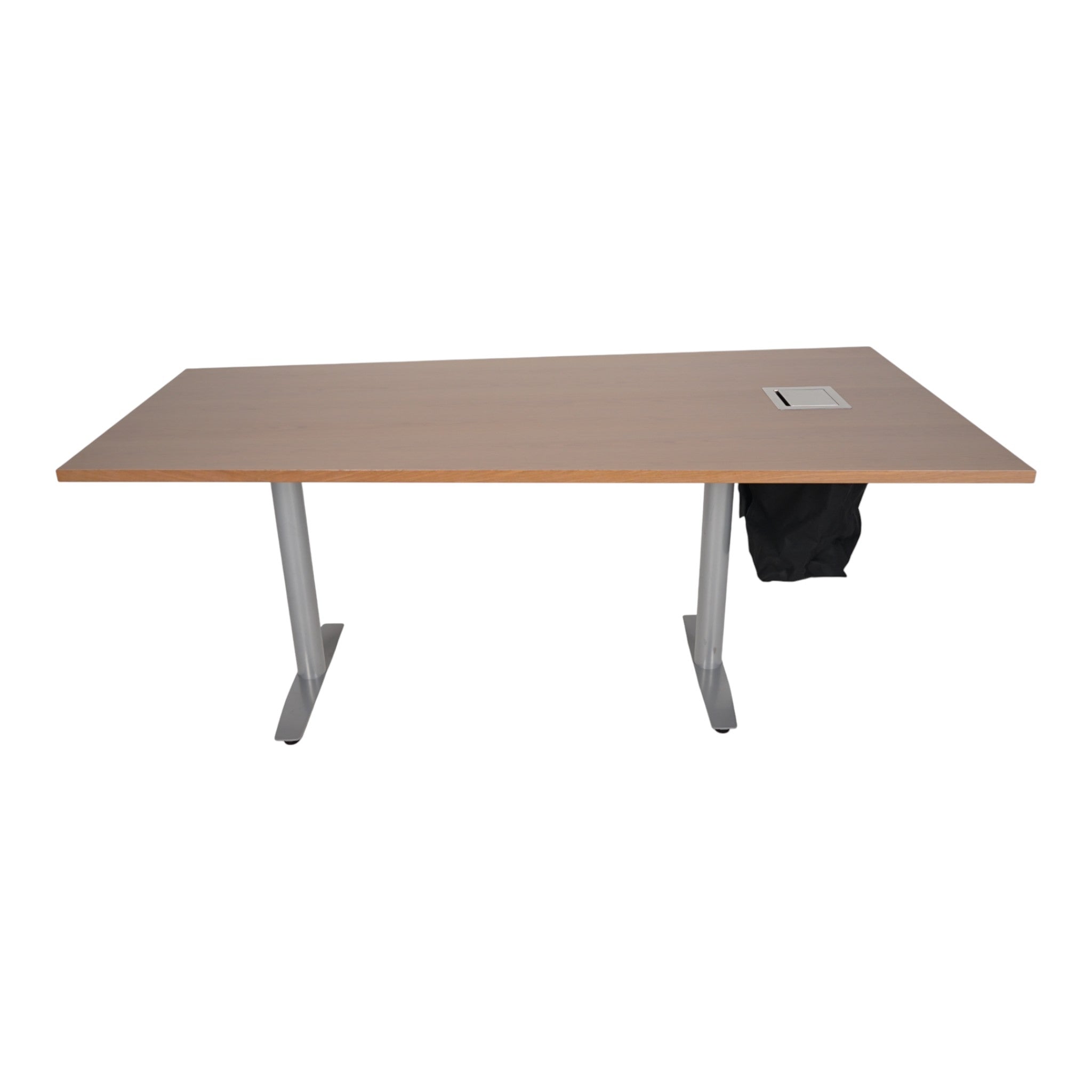 Dette trapesformede møtebordet i eik kombinerer funksjonalitet med praktisk design. Med integrert luke får du enkel tilgang til strøm og kabler, noe som gjør bordet perfekt for moderne møterom hvor teknologi er en viktig del av arbeidsdagen.